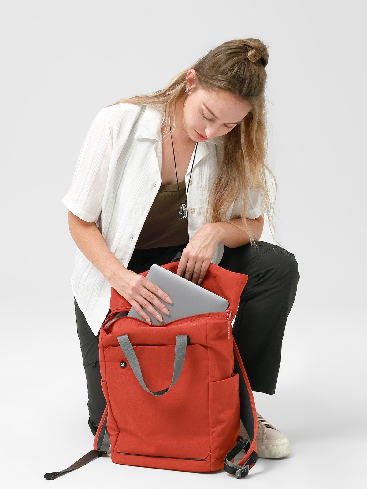 Designed with cyclists and city commuters in mind, this versatile backpack strikes the perfect balance between performance and urban style. The structured silhouette stands upright even when empty, offering quick access and tidy packing every time.