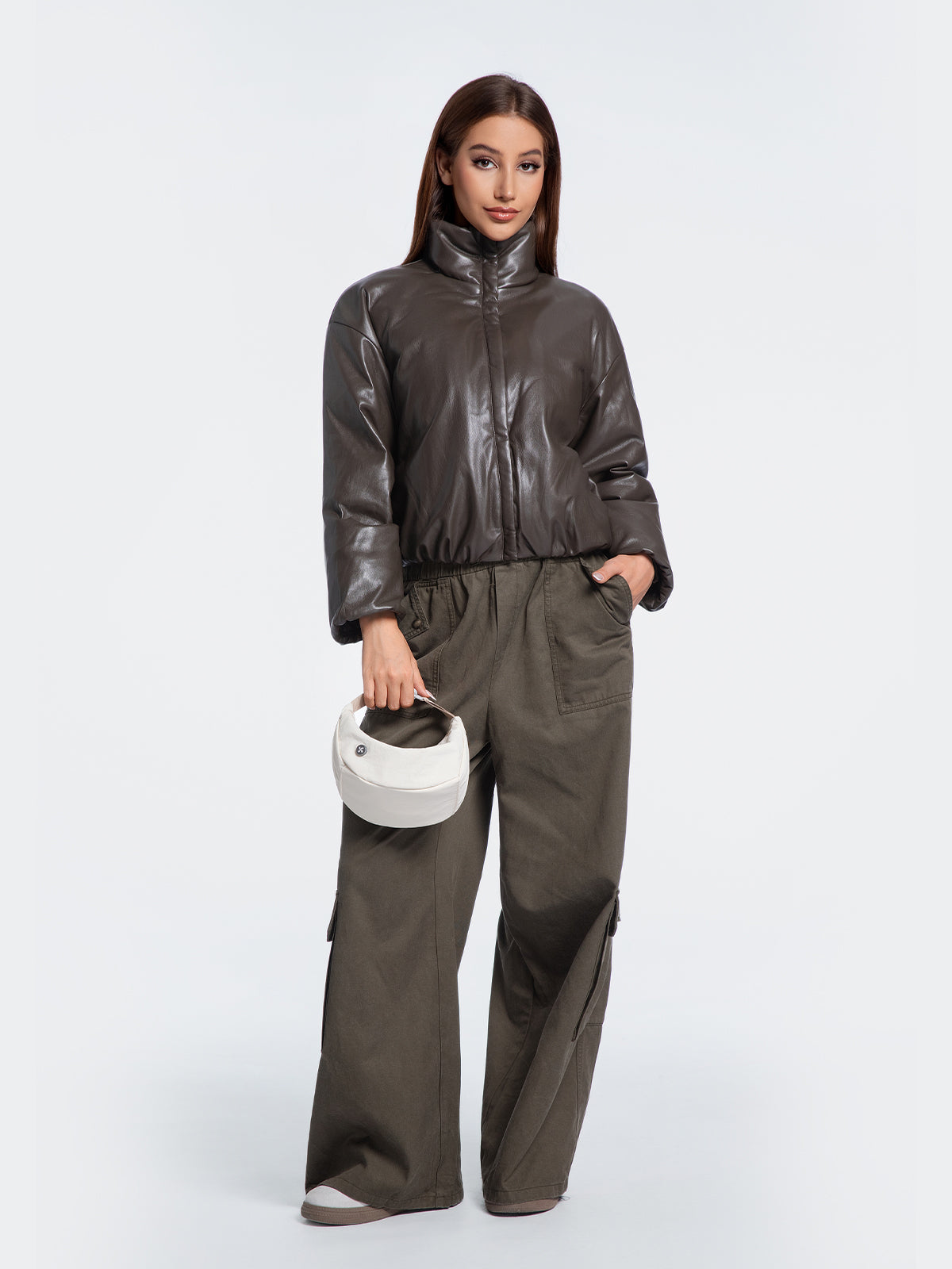 A crescent that hugs your curve. Its expandable base grows with your day, effortlessly urban.